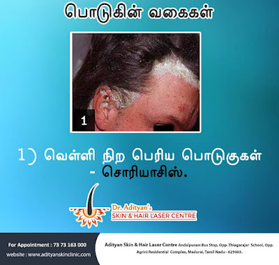 1) வெள்ளி நிற பெரிய பொடுகுகள் - சொரியாசிஸ்.
